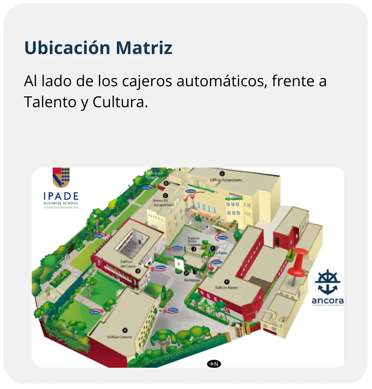 • Módulo Casa UP, ubicado en Extremadura 100, Insurgentes Mixcoac, Benito Juárez, C.P. 03920, Ciudad de México.